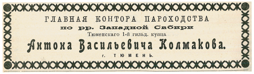 Остановимся подробнее на истории семьи заводоуковских и ялуторовских купцов-старообрядцев Колмаковых, создавших свою «империю» и ставших известными по всей Западной Сибири.