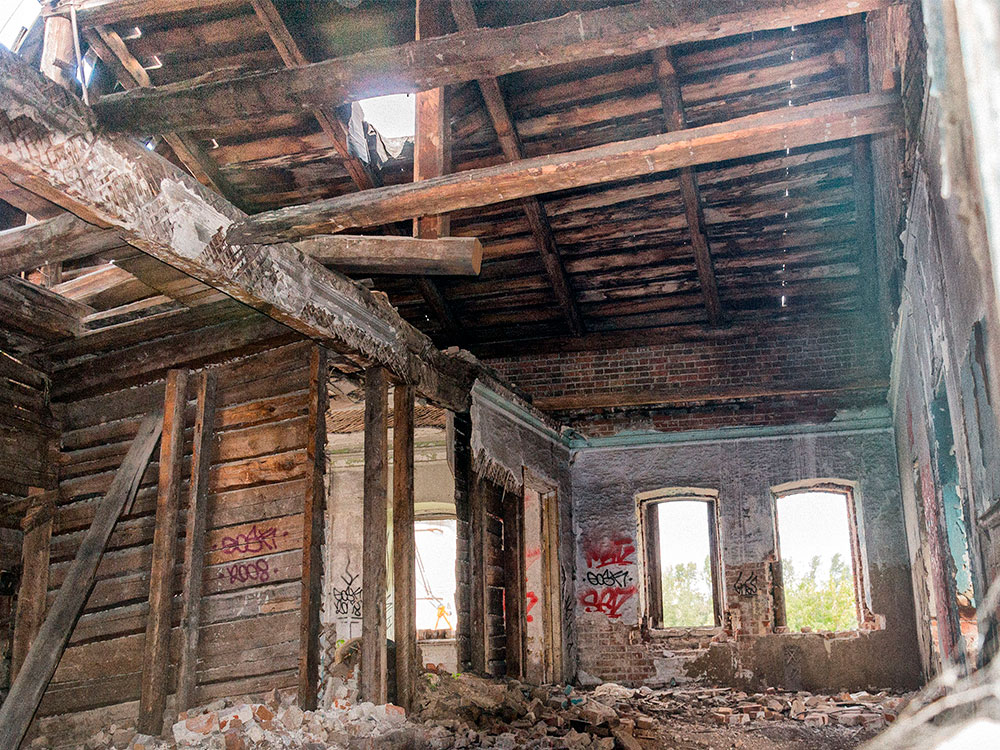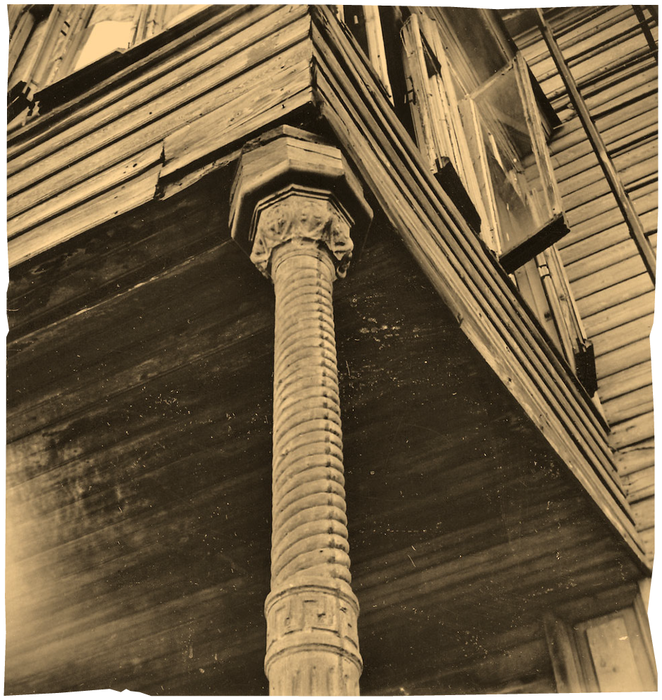 Каменный двухэтажный корпус, расположенный на пристанской территории, на правом берегу реки Тура, был возведен в конце XIX века. Очевидно, построил его тюменский купец 2-й гильдии Павел Петрович Войнов для своего кожевенного завода. Первоначально корпус был возведен для складирования леса, на приречном участке земли, арендованной им в 1860 году.