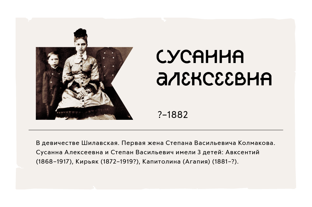 Глава семейства Василий Корнилович Колмаков и его жена Вера Даниловна имели 10 детей: 7 сыновей и 3 дочери. Старшие сыновья родились в деревне Боровинской Юргинской волости, затем семья перебралась в деревню Шестакова Новозаимской волости, Ялуторовского уезда.